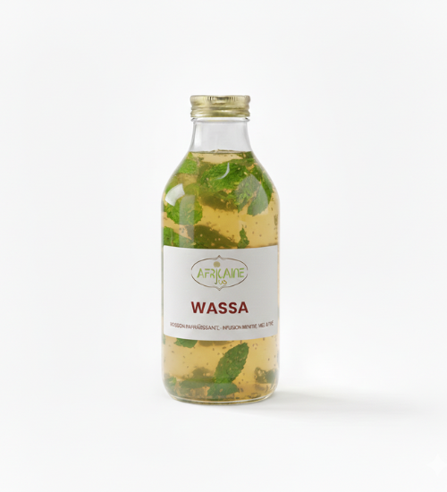 Wass est une infusion traditionnelle sénégalaise et ouest-africaine populaire, un mélange revigorant de thé vert chinois avec du gingembre, de la citronnelle, de la menthe (une plante locale) et du citron, connu pour ses bienfaits énergisants et digestifs.